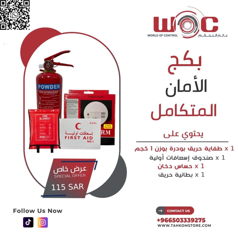 - تغطية 360 درجة: حماية تبدأ من الكشف (الحساس) مروراً بالإطفاء (الطفاية والبطانية) وصولاً إلى الإسعاف (الحقيبة).